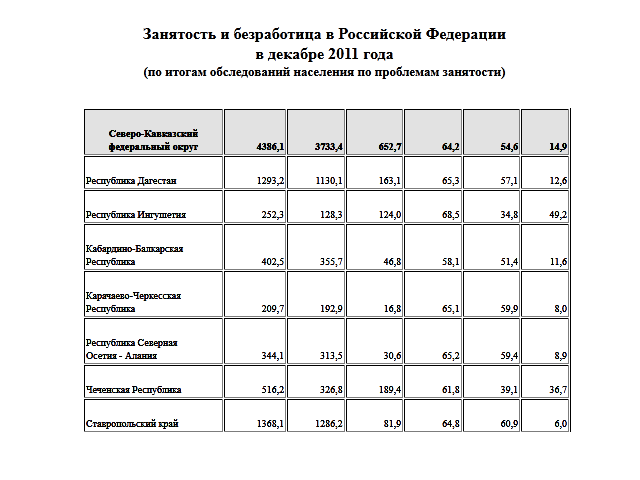 Из республик самый высокий уровень безработицы зафиксирован, как и ранее, в Ингушетии - 49,2% и в Чечне - 36,7%.