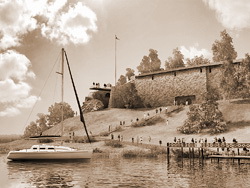 Крупный узел оборонительных сооружений находился и на территории Островка (позднее – Милицейского островка). Сегодня почти пустующий парк – это и есть Островок, но напоминанием о нем служит только небольшой пешеходный мостик через заболоченную протоку. Здесь одно из самых романтичных мест побережья: на противоположном берегу Псковы застыли скалистые обрывы Гремячей горы, башня, церковь, руины палат XVII в., здание бывшего кожевенного завода.