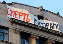 Во вторник петербургские активисты вывесили баннер "Смерть мусорам!" с крыши дома напротив Центра по борьбе с экстремизмом. Фото- и видеоотчет об акции опубликован в блоге петербургских анархистов. Акцию провели утром на улице Рузовской, где располагаются 2-й и 3-й отделы центра "Э". Сколько провисел баннер, не уточняется.