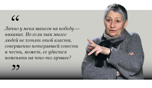 Диалог с властью? В принципе, я всегда за то, чтобы договариваться. Я и в частной жизни ненавижу ссоры и конфликты и готова идти на уступки для сохранения мирных отношений. Но в данном случае — не уверена. Во-первых, нас никто никуда не звал: не было никакого звонка, скажем, из администрации президента… Во-вторых, для дискуссии темы на самом деле нет. Мне так представляется, по крайней мере. Речь может идти — повторяю, это мое личное мнение, и только! — о предъявлении требования к президенту о выполнении его обязанностей: выполнении Конституции в части организации выборов и наказании злоупотреблявших своим положением в процессе выборов. Персонально! Это сразу изменит ситуацию анонимности и безответственности организаторов выборов на ситуацию личной ответственности. Кстати, ситуация уже меняется: возникли проблемы с кандидатурами на работу в избирательной кампании, стали бояться. Честно не могут, а нечестно — боятся! Это же прекрасный симптом!