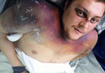 Судебный медэксперт Андрей Яромич обнаружил на трупе Выржиковского закрытые переломы головки левой и правой плечевых костей со смещением отломков и разрывом суставной сумки, массивные кровоподтеки с пропитыванием кровью и размятием мягких тканей верхних конечностей, грудной клетки, в подмышечных впадинах, распространяющиеся на нижнюю и среднюю треть шеи, массивный кровоподтек в проекции левого тазобедренного сустава, кровоподтеки и ссадины в области глаз, носа, кистей, на бедрах, коленном суставе, голенях, ягодицах. Эксперт пришел к выводу, что все повреждения являются прижизненными, наносились они "твердым тупым предметом как по механизму ударов с большой механической силой, так и по механизму ударов со сдавливанием". Повреждения были получены "одно за другим в короткий промежуток времени незадолго до поступления в стационар 02.10.2010 в 8.28". Эксперт заключил, что кровоподтеки могли образоваться от ударов кулаком и точно не могли появиться "одномоментно при падении тела с высоты собственного роста".