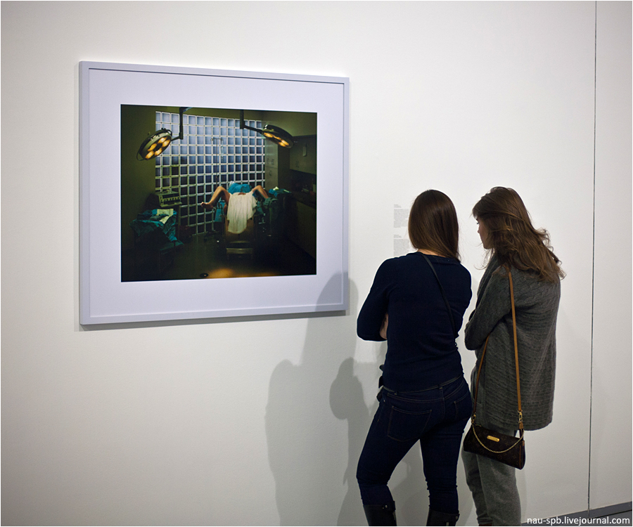 7. А это уже другая выставка этажом выше. Дамы рассматривают описание к фотографии "операция по восстановлению девственной плевы у американского хирурга восточной девушке"