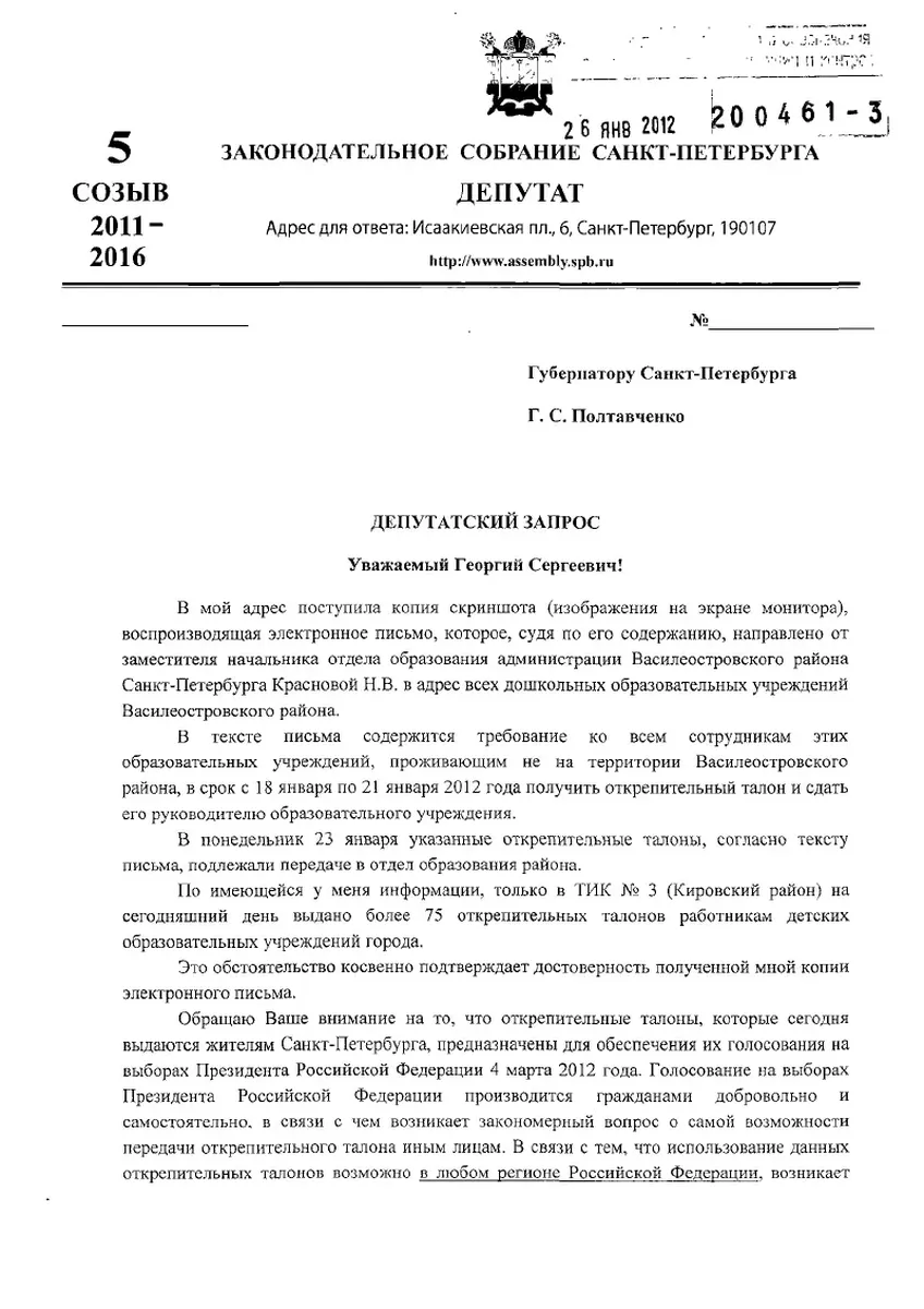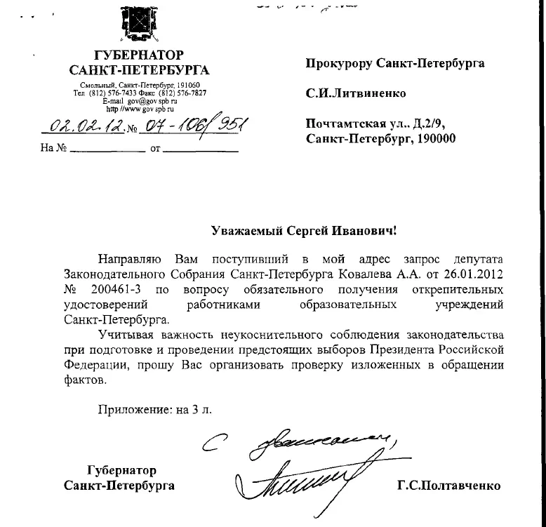 СМ. ДОКУМЕНТ – ПИСЬМО губернатора Георгия Полтавченко – прокурору Сергею Литвиненко.