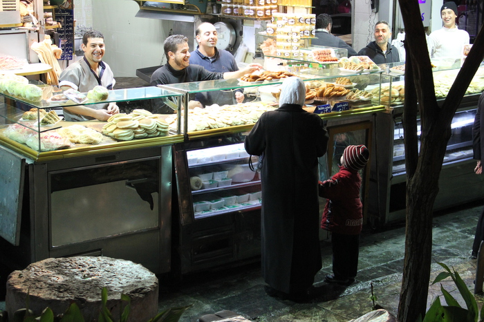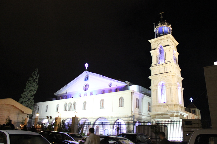 Ну а вечером мы отправились в главную церковь Дамаска к Патриарху Сирии. Дорога пролегала через узкие улочки с торговыми палатками.