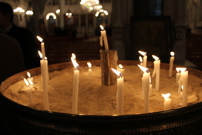 Свечки здесь можно брать бесплатно (привет попам-капиталистам). Когда мы рассказали о нашей практике продавать восковые палки - священники были удивлены.