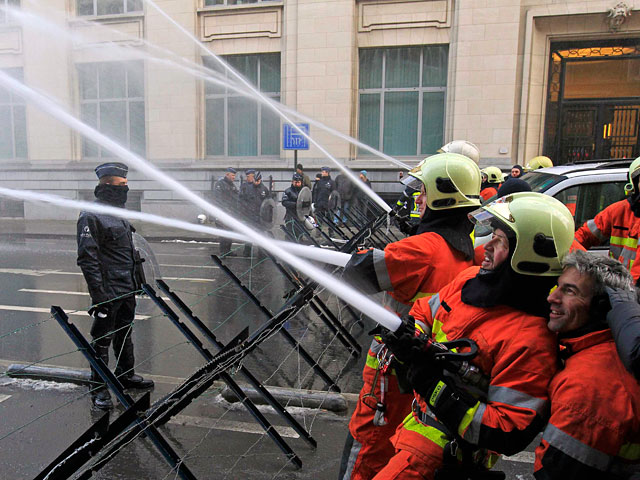 Протестующие бельгийские пожарные полили из огнетушителей полицейских