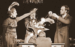 Петербургский критик Евгений Соколинский после спектакля вспомнил, как однажды приехал в Углич, туда, где в конце ХVI века убили царевича Дмитрия. И вот спустя полтысячелетия власти Углича не нашли ничего лучшего, чем устроить по этому поводу детский праздник – водили хороводы. Пожалуй, в этом было больше постмодернизма, чем в режиссерских изысканиях Владимира Рецептера, у которого «Как во городе было во Казани» Мусоргского в исполнении драматических артистов звучит так, что веришь, что в городе Казани по-другому и быть может.