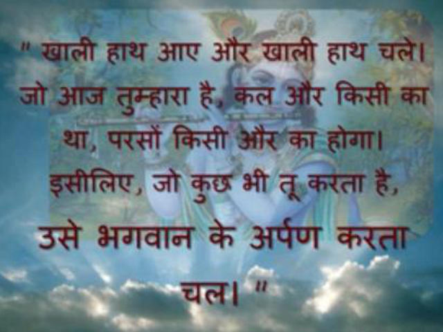 "Невежды выполняют предписанные им обязанности, стремясь к плодам своего труда, тогда как тот, кто обладает совершенным знанием, должен делать то же самое, но не ради корысти, а для того, чтобы направить людей на истинный путь" (гл. 3, стих 25).