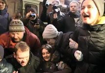 Участники акции протеста, задержанные во вторник вечером у Центризбиркома, жестоко избиты в автобусах по дороге в ОВД. Как сообщает корреспондент Граней.Ру, в акции "Остановим диктатуру" приняли участие около 30 человек, в основном активистов "Другой России". В 19 часов они зажгли несколько дымовых шашек, Большой Черкасский переулок был окутан красным дымом. В отличие от двух предыдущих акций, другороссы не успели развернуть баннер у входа в ЦИК.