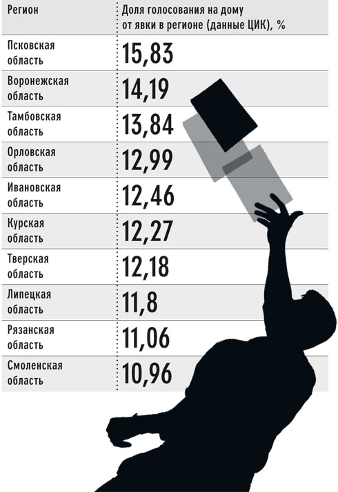 Регионы-лидеры по голосованию на дому на выборах Госдумы РФ 4 декабря 2011 г.