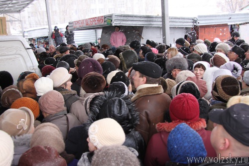Сегодня в г.Волжском Волгоградской области на Колхозном рынке раздавали “пакеты счастья” для обездоленного народа. И ни кто-нибудь, а “МММ-2011”. В пайке можно было найти курицу, бутылку масла, пачку макарон и банку сгущёнки. Отстояв огромную очередь, которую волгоградцы занимали с 5 часов утра, можно было получить эту заманчивую “корзину потребителя”. Приблизительная ее стоимость составила порядка 200 рублей.
