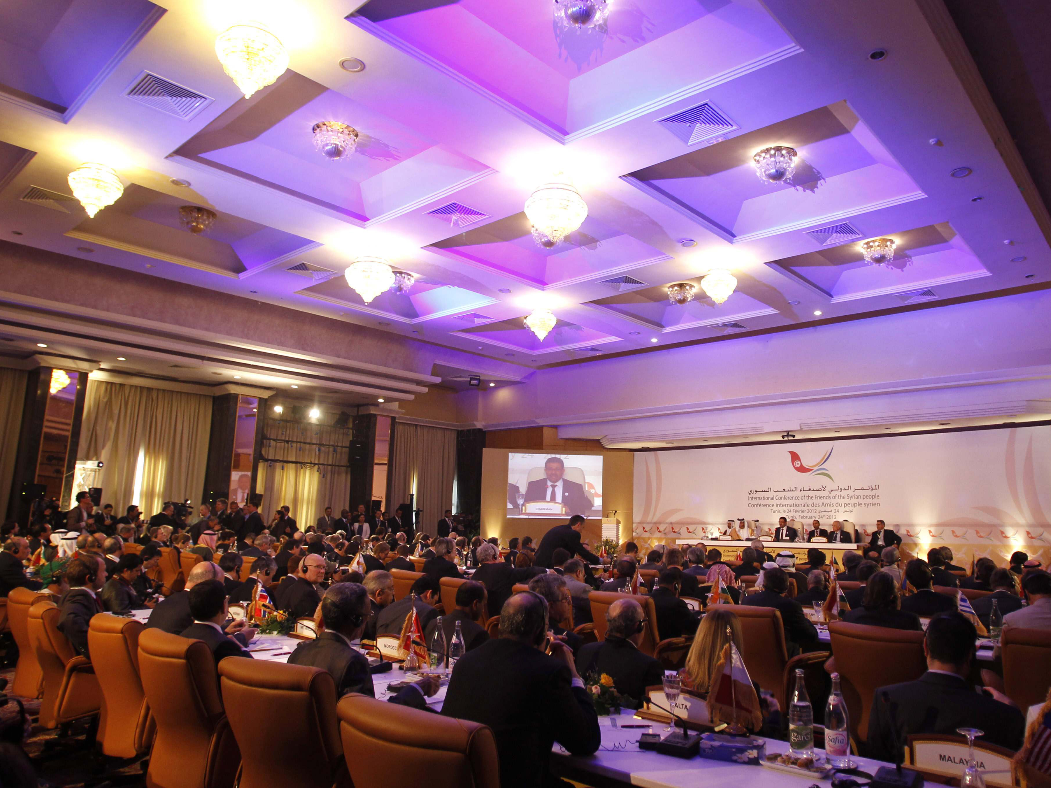 Участники первой встречи этой группы, прошедшей в пятницу в Тунисе, приняли декларацию, где призвали к немедленному прекращению насилия в стране. Представители более 60 государств, участвовавших в конференции, признали оппозиционный Сирийский национальный совет одним из представителей интересов сирийского народа и призвали к формированию в Сирии правительства национального единства.