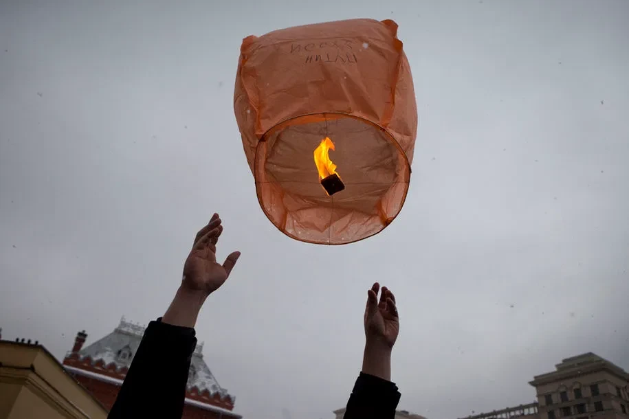 Когда в толпе стали раздавать белые воздушные шарики с эмблемой Лиги избирателей, провокаторы отняли большую гроздь и триумфально полопали шары. Зато не смогли помешать запустить в небо бумажный фонарь-аэростат. «Путин, улетай!» - кричали участники акции, следя за его полетом.