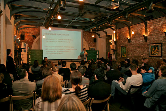 Лекция состоялась 29 марта 2012 года (четверг) в 19-00 в кафе ZaVtra (бывшие "ПирО.Г.И. на Сретенке"). Адрес: Москва, ул. Сретенка 26/1 (м. "Сухаревская"). Схема проезда. Вход бесплатный. Телефон для справок: +7 495 787-11-62.