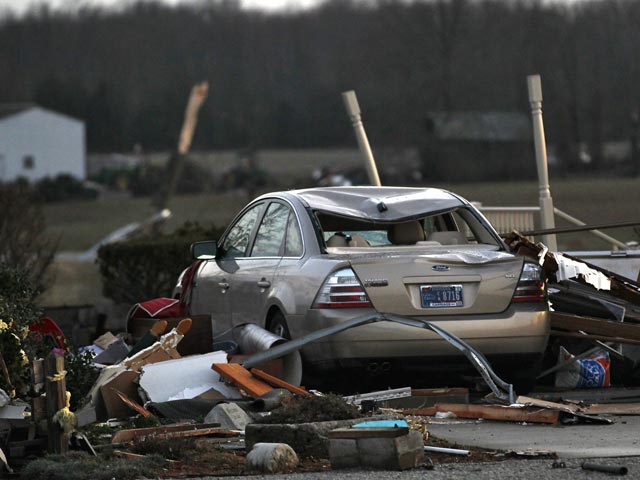 По последним данным, не менее 28 человек погибли в результате новой серии мощных торнадо, обрушившихся в пятницу на штаты Среднего Запада и Юга США, передает "Радио Свобода" со ссылкой на АР. По данным американских властей, 13 человек стали жертвами стихии в штате Индиана, в Кентукки погибли 12, еще двое - в соседнем штате Огайо.