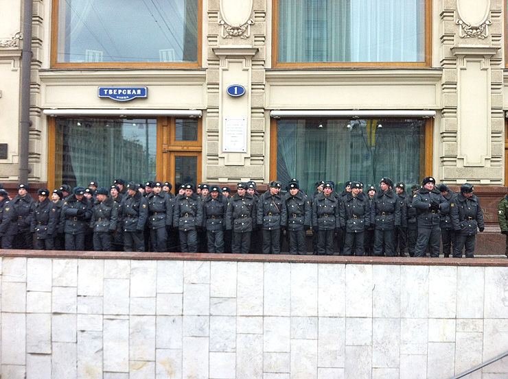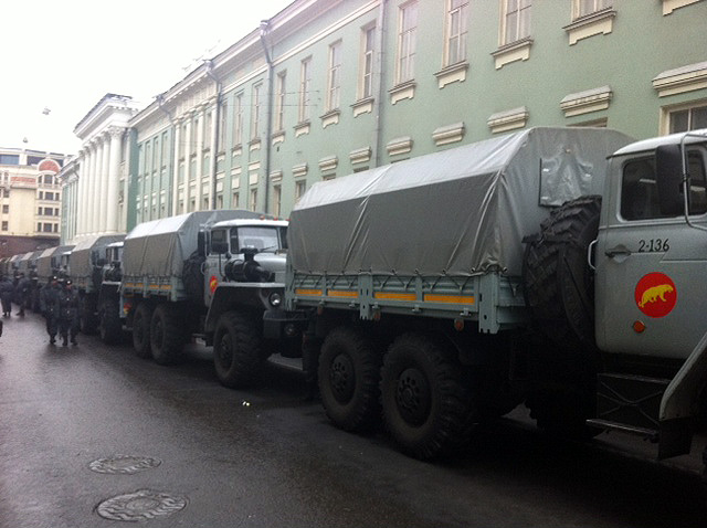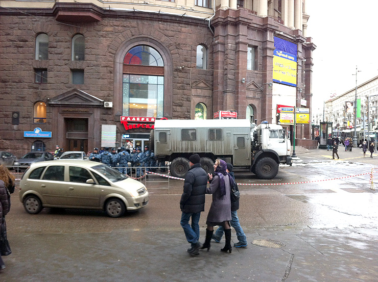 17.42 Евгений Нателашвили, PPost На Дмитровке, у станции метро "Театральная", — 10 машин внутренних войск.