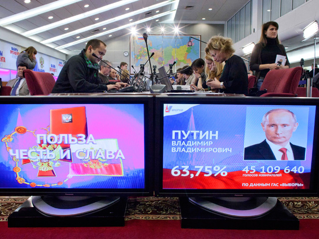 Чуров объявил, что выборы президента состоялись, объявленные результаты могут измениться на сотые, в крайнем случае, на десятые доли процента. Осталось только подвести официальные итоги. По предварительным данным, полученным по итогам обработки более 99% протоколов, президентом России на шесть лет в первом туре избран премьер Владимир Путин. Он получает 63,75% голосов избирателей.