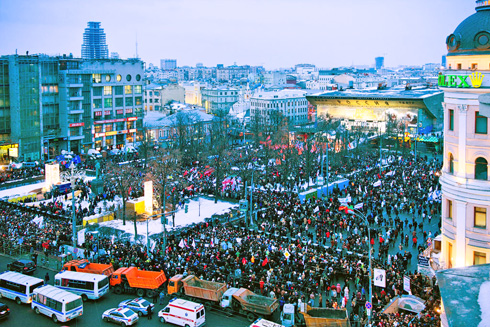 Мирный митинг «за честные выборы», прошедший на Пушкинской площади, завершился столкновениями с ОМОНом и задержаниями. Выразить возмущение прошедшими выборами на площадь вышли от 10 тысяч, по версии ГУВД, до 20-25 тысяч, по словам организаторов. Сам митинг прошел без эксцессов, но по его завершении лидер «Левого фронта» Сергей Удальцов предложил желающим не расходиться и остаться на площади. Санкции на такое мероприятие теоретически не требовалось — его можно было провести в формате встречи избирателей с депутатом Госдумы Ильей Пономаревым.