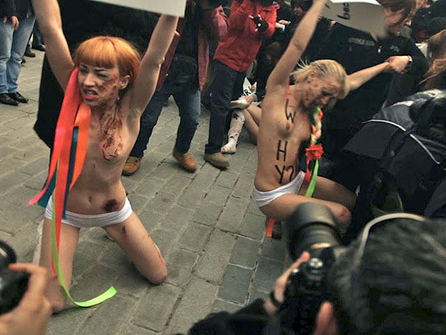 Украинские феминистки прибыли в Стамбул 8 марта по приглашению местной фирмы, производящей нижнее белье. В полдень они появились полуобнаженными возле центральной мечети Agia Sophia и развернули плакаты - "H2SO4 - формула страха", "Смерть варварам!", "Стоп кислотная атака!".