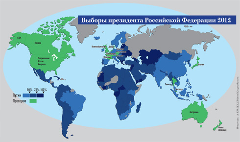 | Столько наших сограждан, разбросанных по всему миру, проголосовали на президентских выборах-2012. Основная борьба за рубежом развернулась между Владимиром Путиным и Михаилом Прохоровым. Результаты показательны, в том числе и как отражение внешней политики России. |