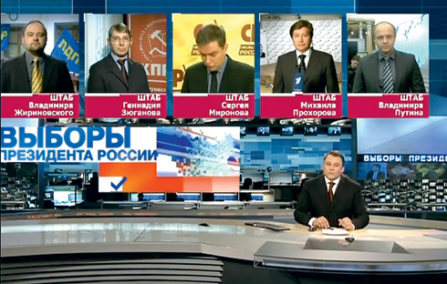 Агитка на НТВ должна была нанести по оппозиции решающий ударРаботать на позитив Так мы скоротали эту ночь, и Высоцкий мог бы сказать еще раз: «Для меня эта ночь вне закона». Соловьев и Толстой сыто отдувались, несчастный Рыжков вымученно улыбался, в штабе Путина вылакали шампанское и взялись за коньяк, Манежная массовка прыгала все выше, западные поздравления поступали медленно, и один диктор с НТВ даже ухитрился зачислить Китай в «Большую восьмерку», чтобы пионерка-поздравительница Ангела Меркель, обогнавшая всю Европу, если не считать, конечно, Лукашенко с Януковичем, не чувствовала себя такой одинокой.