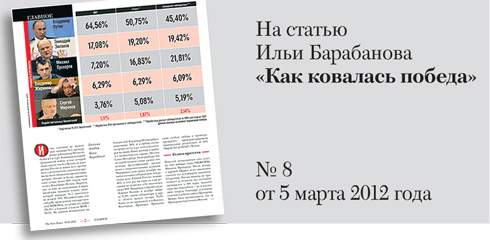 Нiколай ПавловПутин при любом раскладе выиграл, так? Так. А то, что ему баллы накручивали, так это типично русская система потемкинских деревень. Ведь не секрет, что была разнарядка. Ну давайте будем честными, посмотрим вокруг, электората (назовем его так), которого все устраивает, — большинство. В такой мы стране живем.
