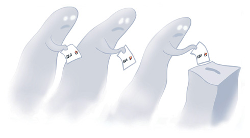 Первое, что удивило Константина, когда рано утром он пришел на свой участок, — списки потенциальных избирателей серьезно пополнели: еще вчера, он проверял, они умещались в три книги, а 4 марта их оказалось четыре. Откуда? — удивился Константин. Оказалось: в дополнительной книге — люди с временной регистрацией, имеющие право голоса, объяснила председатель УИК Евгения Таркасова. В 14.00 эти доплица дружно появились на участке: все как один были дворниками, все — в оранжевых робах, у многих, правда, не оказалось паспортов граждан России. Белов затребовал книгу, по которой им выдавали избирательные бюллетени: «То, что я увидел, повергло меня в шок, — признает он. — В книге были списки «жителей» дома № 14 по улице Кубанской. В нем, как следовало из списка, аж 194 квартиры, но я прекрасно знаю эту «сталинку» — пять этажей, пять подъездов, в каждом — примерно по десять квартир». Не полагаясь на память, Белов пошел и проверил: действительно, никакого второго дома по указанному адресу не было — тот, что был (пять этажей, пять подъездов), тот и стоял. Его жители голосовали у одного столика, «жители» дома-призрака — у другого: они дали бы кандидату Путину лишние 400 голосов, но бдительный Белов такой радости премьер-министра лишил. Сколько еще таких домов-фантомов было создано по Москве и просто не замечено наблюдателями, остается только догадываться. Но сообщения об использовании подобной технологии пришли также из Архангельска и Саратова.