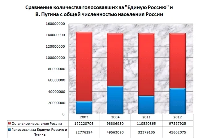 Сторонники Путина твердят, что «меньшинство должно уважать мнение большинства». Это верно: путинское меньшинство должно уважать мнение подавляющего большинства населения страны. Ведь большинство населения страны никогда не голосовало за Путина и ЕР, что следует даже из официальных данных ЦИК. А ведь реальная социальная база ЕР и Путина по стране, безусловно, еще ниже...