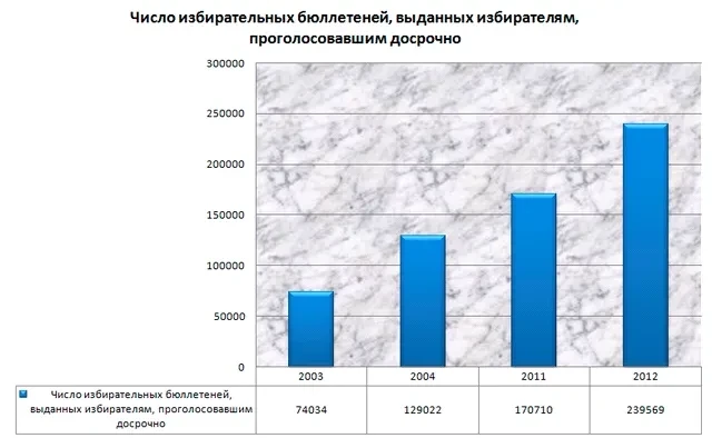Вообще, технологии фальсификаций на этих выборах заметно обогатились. Большинство из них — это манипуляции со списками избирателей. Например, появился новый, оригинальный способ: в книге избирателей, по которой выдаются бюллетени, фиктивно увеличивается количество квартир в реально существующих домах, что не всякий-то избиратель и заметит. Наконец, последний ресурс — досрочное голосование.