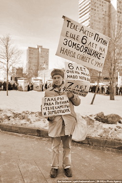 Как всегда, толпа активно приветствовала лидера «Левого фронта» Сергея Удальцова. Своими бесконечными задержаниями и голодовками он заслужил репутацию неподкупного уличного политика. «В Кремле самозванец, а это для России смертельно опасно! – выкрикнул Сергей Удальцов. – Нас всех обокрали, это была оргия жуликов и воров. После выборов я пришел домой и долго мыл руки… 4 марта наша кампания «За честные выборы» перешла в другую стадию – за честную власть, против жуликов, воров и самозванцев… Наши площади для того, чтобы там собираться. И будем приходить чаще, когда будет теплее!».