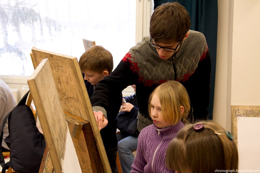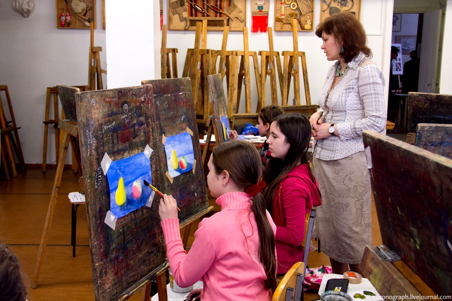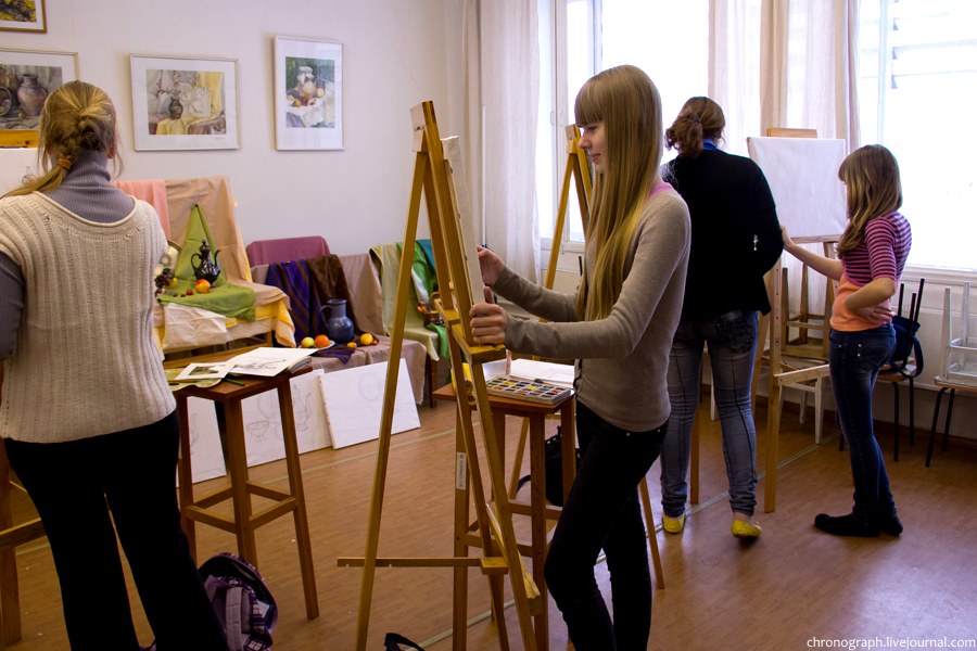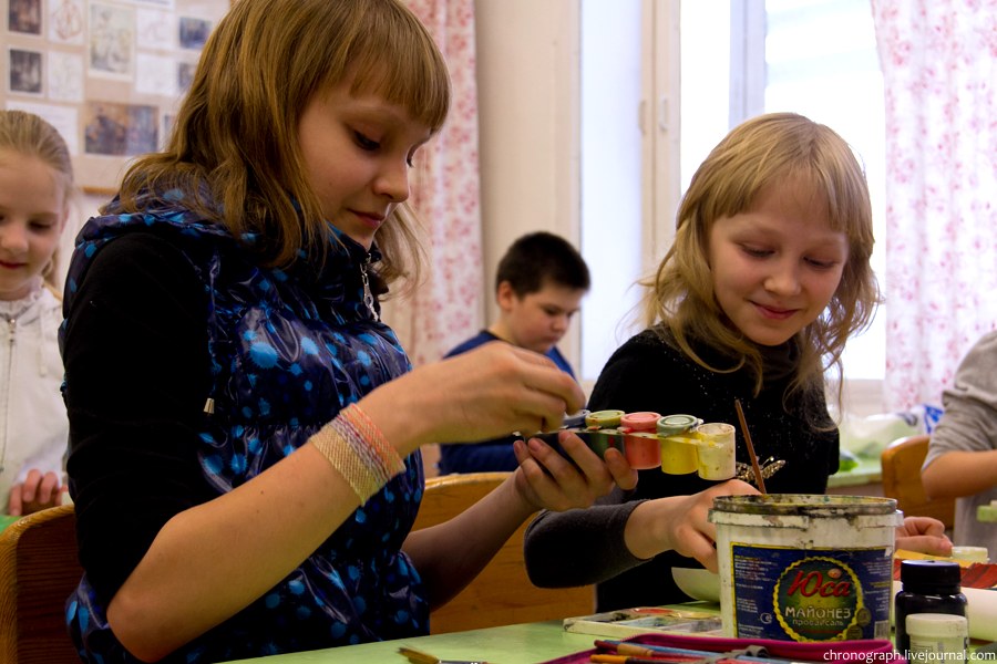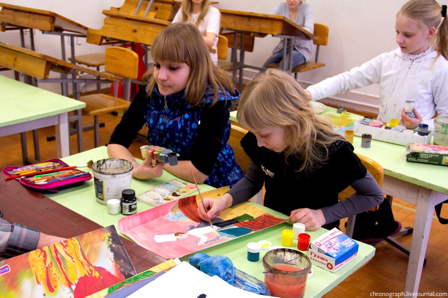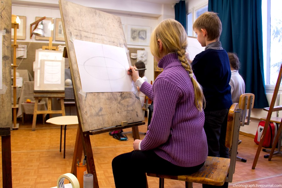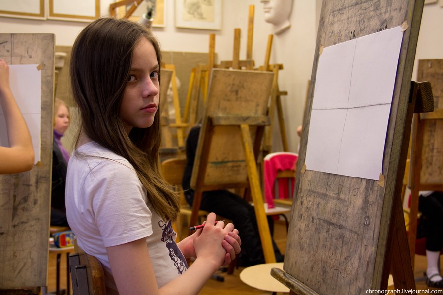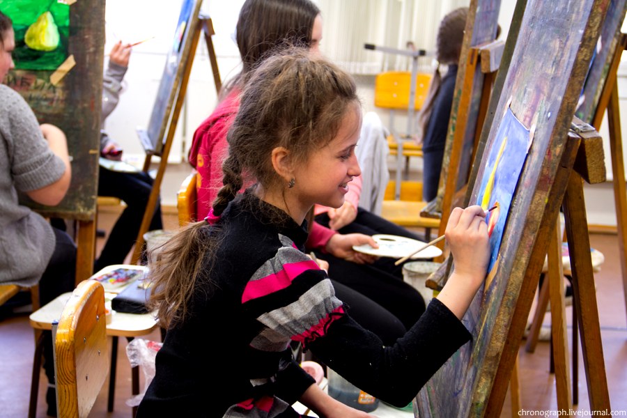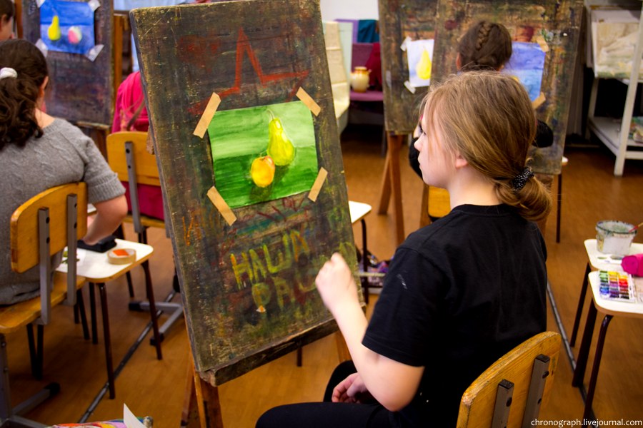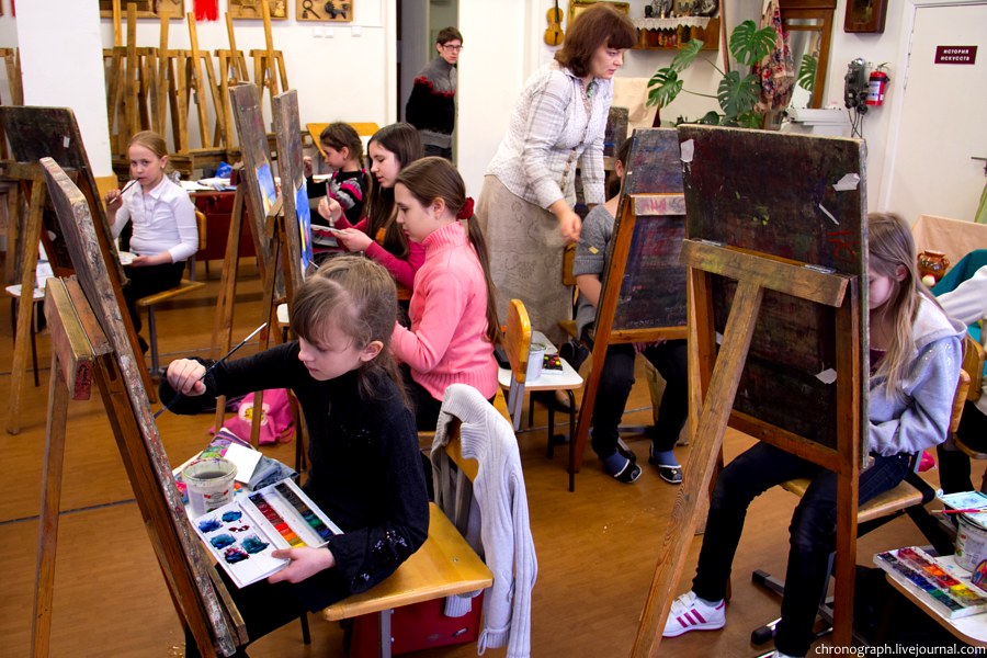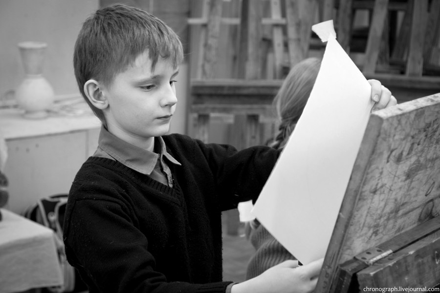 Недавно побывал в детской художественной школе им. Репина, что находится на ул. Механизаторов, поснимал детей в процессе обучения и интерьеры школы. Школа была основана 1 сентября 1985 года, имя великого русского художника Ильи Репина ей было присвоено в 2006 году за заслуги в эстетическом воспитании и образовании детей и подростков. В школе есть несколько ступеней обучения: начальное общее образование (подготовительное отделение для самых маленьких), основное общее образование (базовое) и среднее общее образование с профессиональной ориентацией. Больше половины выпускников поступают учиться в профильные средние и высшие учебные заведения.