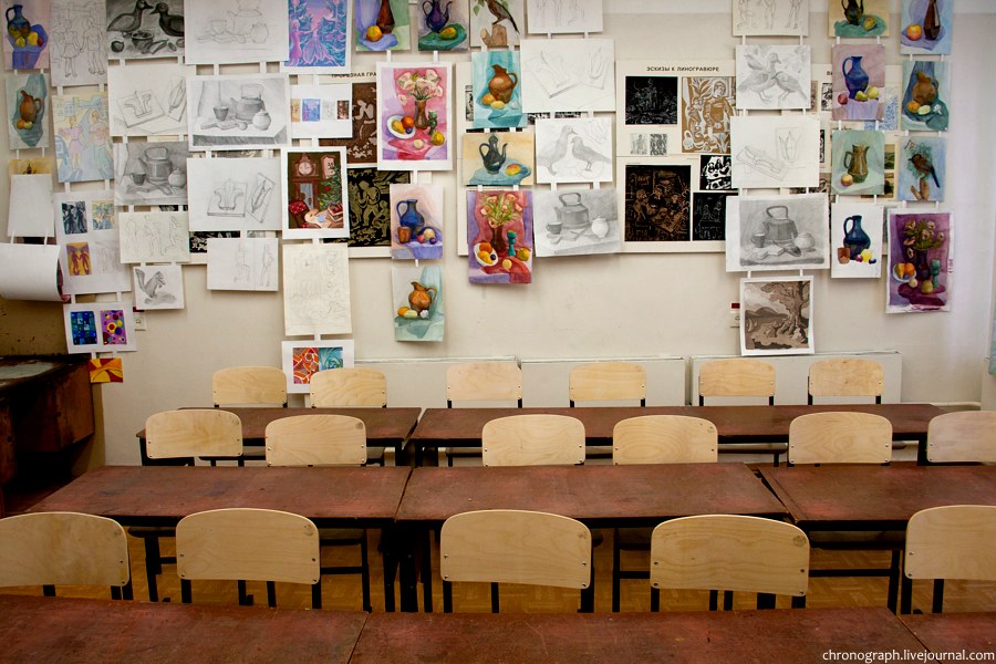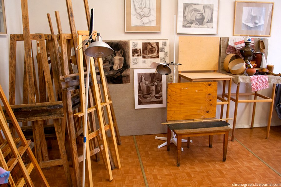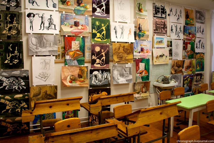 13. Школа имеет 10 учебных мастерских, оборудованных по предметам и свой выставочный зал на ул. Мурысева.