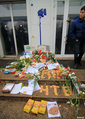 Мероприятие было анонсировано как "Похороны честного телевидения". К телецентру принесли настоящий гроб, на ступенях выложена печеньями надпись "RIP НТВ", лежат гвоздики и зеленые яблоки - символ телеканала. Накануне печенье раздавали друг другу участники народного схода на Пушкинской площади (