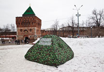В субботу Староверов и Кузнецова были задержаны на площади Минина и Пожарского, где они проводили "предупредительную акцию в рамках кампании "Осадим Кремль". Оппозиционеры установили палатку у памятника Минину, которую вскоре убрали полицейские (