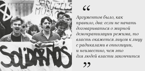 Непременным условием такого варианта является сильная организованная оппозиция, опирающаяся на широкую массовую поддержку (в той же «Солидарности» было 9 млн членов), и отказ обеих сторон от силовых действий. Для Латинской Америки эта модель демократизации оказалась более или менее успешной, хотя везде процесс шел по-разному. В Бразилии он растянулся на шесть лет, в Аргентине он был короче, чему способствовало поражение в Фолклендской войне, в результате чего военный режим был полностью дискредитирован, и военные, находившиеся у власти около семи лет, были вынуждены уйти. В Польше процесс демократизации растянулся на девять лет: он столкнулся с введением чрезвычайного положения и массовыми арестами, что, как быстро стало понятно, лишь усугубило политический кризис, он завершился соглашениями круглого стола в 1989 году. Но надо иметь в виду, что такие «истории успеха», как правило, становятся возможны только после тяжелых и мучительных провалов и со стороны режима, и со стороны оппозиции.