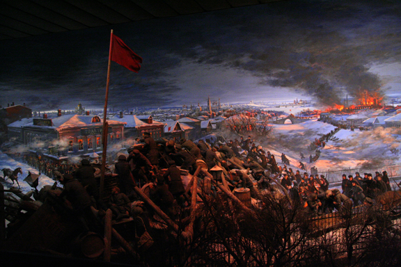 Фрагмент диорамы «Героическая Пресня. 1905 год», завершенной в 1982 году художником Ефимом Дешалытом. Совершенно новые идеи и технологии использованы в самом проекте «Педагогическая поэма», созданном Ильей Будрайтскисом, историком, художником и политическим активистом и Арсением Жиляевым, художником левых взглядов. Можно сколь угодно долго и масштабно финансировать музеи и создавать гранты для художников, но не добиться никакого положительного результата. Потому что важнейший участник любой выставки — зритель, образованный и заинтересованный. Таких мало — и значит, в первую очередь надо позаботиться о том, чтобы их стало больше.