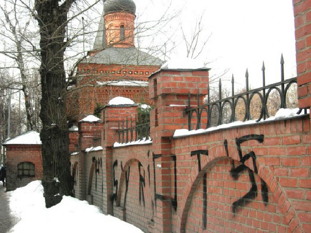 В ночь с 26 на 27 марта 2012 года неизвестные нарисовали на ограде храма святителя Митрофания Воронежского свастику и лозунги, призывающие освободить участниц группы Pussy Riot. Настоятелем этого храма является председатель Отдела Московского патриархата по взаимодействию с Вооруженными силами и правоохранительными учреждениями протоиерей Димитрий Смирнов. Возмущенный священник записал видеообращение (смотреть текст), опубликованное порталом "Православие и мир". В этом обращении священник заявил, что "дьявол открыто заявил всем нам о своем существовании" и через символ свастики рассказал, чьи чада участники панк-группы.