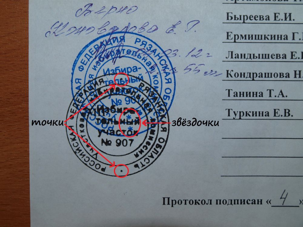 Что же выясняется? Наблюдателям на копиях протоколов печати действительно ставились поддельные! Различия минимальны и практически незаметны - там, где должны располагаться точки, стоят звездочки. Вот такое ноу-хау рязанских фальсификаторов, позволившее им в наглую переписывать протоколы и вбивать в "ГАС-Выборы" скорректированные результаты.