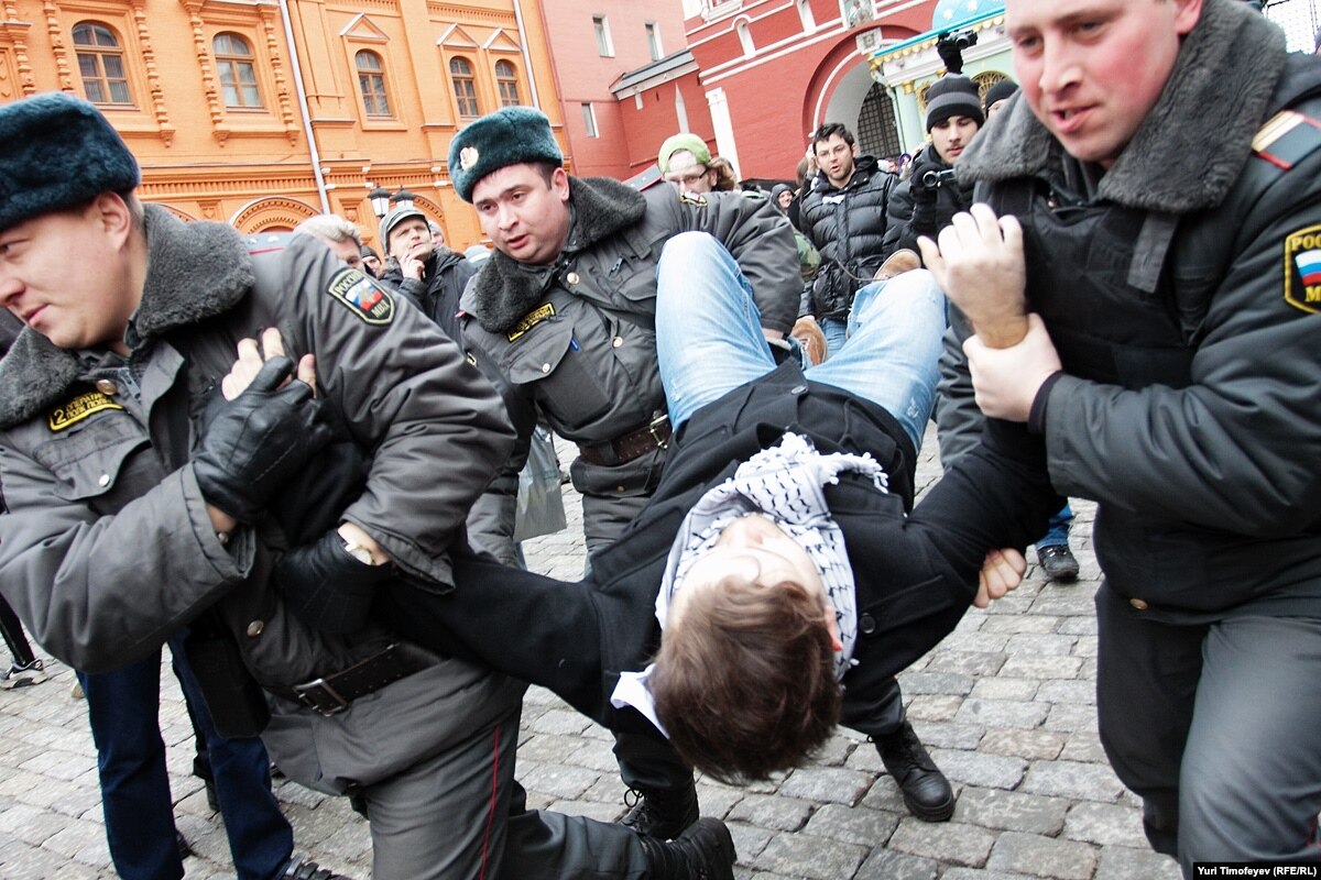 Все эти люди и раньше участвовали в митингах и шествиях "За честные выборы". У всех, кто пришел к Красной площади, к одежде были прикреплены белые ленты – своеобразный символ протестного движения в России . Однако на главную площадь страны активистов не пустили, она оказалась перекрыта полицией.