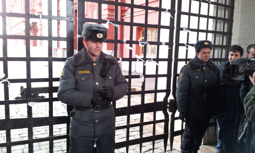 В итоге протестующие продолжили свою акцию рядом с Красной площадью: водили хороводы у знака так называемого "нулевого километра" и скандировали: "Россия без Путина". Кроме того, некоторые участники прикрепили белые ленты к решетке Иверских ворот.