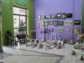 Высохшие кокосы, старинные утюги, керосиновые лампы, синие бутыли из-под вина сообщают композиции настроение игры в крокет из «Алисы в стране чудес». Лишь относительно отстранённо покоится бюст Эйнштейна, выполненный здешним скульптором, и почему-то похожий на ведущего передачи «Поле чудес» – Якубовича. С ним безгласно перекликается отрезанная голова мараньенского деятеля культуры начала 20 века, покрытая такой сочной краской, отливающей в золото, как будто её собирались подарить на День Рождения любимому другу или злейшему врагу.