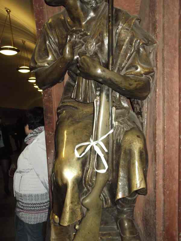 13.17 "Интерфакс" Десяток людей в центре станции метро "Площадь Революции" стоят с белыми цветами, белыми лентами на одежде и белыми бантами. Многие скульптуры, установленные на станции метро, украшены белыми гвоздиками и розами. Сотрудники полиции призывают собравшихся не скапливаться на станции и выходить в город.