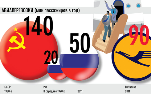 На обочине рынка Но и у нас же тысячами выпускали Илы, Ту и так далее. У нас, в смысле в СССР, было произведено 15 тыс. самолетов — это составляло 25% мирового авиапрома. Сюда входили и «аннушки», и огромные грузовики вроде «Руслана», и «Мрия». Тех же Ту-134 было выпущено 1500 штук — то есть настоящее товарное количество, соответственно, и все службы были отлажены. Но тогда наш пассажиропоток составлял 140 млн в год, а в 1989 году он начал падать и в середине 1990-х упал до 20 млн. Самолеты встали, потому что возить стало некого. А возить стало некого, потому что у людей денег не было. А раз готовые самолеты встали, то и новые делать перестали — кто бы их купил? Сейчас мы перевозим 50 млн пассажиров в год. А одна только «Люфтганза» — 90 млн. В год. А крупнейшие компании США перевозят миллиард. Миллиард! Поэтому, когда какой-нибудь депутат от ЛДПР или КПРФ кричит, что мы самая большая страна в мире и потому мы обязаны быть авиационной державой, он должен был бы знать, что Африка — больше нашей страны, но там на самолетах не летают, потому что на самолетах летают люди, у которых есть деньги заплатить за билет. Другими словами, число пассажиров жестко коррелируется с ВВП на душу населения, и потому маленькая Швейцария с населением 7,6 млн и более $42 тыс. в год дохода на душу налетывает больше, чем вся Африка.