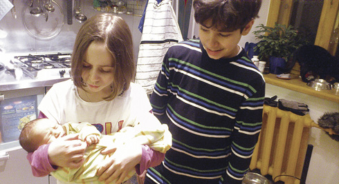 Это Вова и Елка держат Сеню, которого шесть недель назад родила Даша.