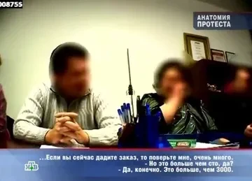 Один из центральных эпизодов «Анатомии протеста» — собрание ведущих маклеров (см. фото). «Под видом клиентов мы пригласили их на встречу и попросили рассказать о своих возможностях», — говорит в фильме диктор Сергей Полянский. Однако если верить попавшим к нам документам, то это Кошара заранее сообщает наверх о готовящемся собрании в офисе Concord-Catering и просит выделить каждому маклеру по 10 тысяч рублей, «чтобы поднять им настроение». Согласно смете, компания Евгения Пригожина выплатила шести маклерам 180 тысяч рублей, «чтобы молчали».