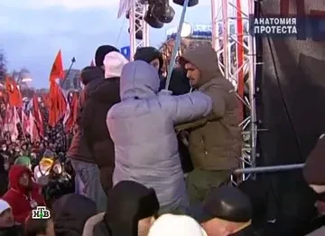 — Его попросили дать трех-четырех человек, чтобы проверить. В итоге приперлись 15 рыл, — вспоминает ответственный за безопасность на митингах, попросивший представить его Владимиром Владимировичем. — Они получили бейджики, их поставили на посты, но в середине митинга они их бросили, рванули к сцене и попытались забраться на нее. Эти кадры есть в «Анатомии протеста». Но они поняли, что будет жесткий рамс, и по беспределу прыгать не стали. Им это вообще не надо было. Стало ясно, что ребята пришли за деньги. Конечно, это было внезапно, но такой вариант мы тоже просчитывали, потому что у нас паранойя — это общее заболевание, — говорит Владимир Владимирович.