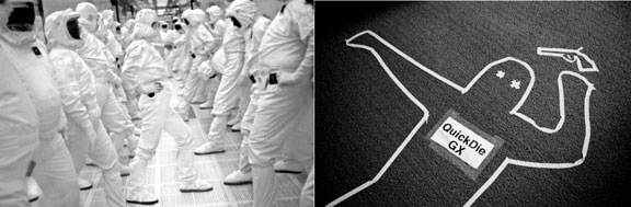 Дуг Меньюз «Перерыв на разминку на фабрике Intel Fab 11X, Рио-Ранчо, Нью-Мексико», 1996; «Крик о помощи в отделе технической поддержки Apple, Остин, Техас», 1996 – хотя Макинтоше задумывался простым в сипользоавнии, проблемы возникали нередко, и пользователи вымещали свой гнев на отделе техподдержки, эту картинку на полу изобразил один из работников отдела, пришедший в отчаяние от количества ошибок в программе.Комментарии фотографа, прожившего в этом мире пятнадцать лет, часто более интересны, чем сам снимок, вполне обыденный – в Силиконовой долине гламуром не болели. Вот снимок, где Билл Клинтон в 1995 году беседует с исполнительными директорами долины на устроенной ими благотворительной вечеринке. Он явил столь серьезные познания в новых технологиях, экономике и торговле, что директора были очарованы и щедро пожертвовали на предвыборную кампанию. Понятно, почему попытка Медведева прорекламировать себя как любителя новых технологий не имела успеха – он вещал перед пустым залом. Аудитории, способной оценить это и приложить к собственному будущему, и уж тем более поддержать кандидатуру материально, в России не существует - отечественные компьютерные гении утекают в ту же Силиконовую долину, потому что у нас ценят не способности конкретных людей, а некое абстрактное представление о модернизации.