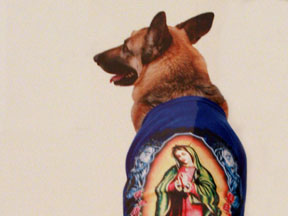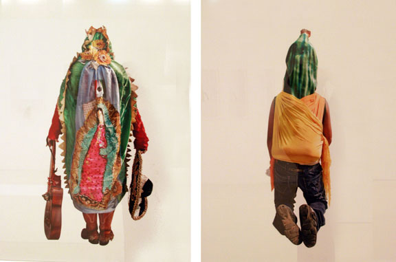 С религией происходит та же история отчуждения от людей и превращения в самодостаточную инфраструктуру, которой люди нужны как источник дохода. Ну а некоторым людям религиозность нужна как часть имиджа. Фотограф из Мексики Алинка Эчеверрия сняла в своей серии «Путь на Тепеяк» (Манеж, до 9 мая) паломников в храм Богоматери Гваделупской, покровительницы всех темнокожих. Они идут в гору и несут на своей спине домашние образы Богоматери, чтобы освятить их. Никаких гор и храма на фотографиях нет – фигуры вырезаны и помещены на белый фон, нет и лиц, все сняты со спины, ведь самое важное – образы Богоматери на их спинах. Это напоминает о фотографиях в модных журналах, где не важен контекст или модель, а вся суть в наряде. Однако мысль автора не в том, чтобы связать моду и религию. Паломники просто отказывались сниматься, скрывая запыленные и замученные лица, так что она снимала их со спины, часто тайком. Но самодельные или приукрашенные собственными руками образы Богоматери рассказывают о своих обладателях. У кого-то картина огромная, больше своего хозяина, у кого-то целая пачка маленьких образов, кто-то не взял с собой ничего, кроме иконы, а кто-то тащит кучу разноцветных тюков, посреди которых образ почти не видно. Один молодой мужчина оформил свою Богоматерь в стиле хай-тек, поместив в большой стеклянный цилиндр с галогеновой подстветкой на алюминиевом потолке. Есть и мужчина, который образа с собой не взял, просто идет замаливать грехи – он обнажен до пояса и на голой спине у него прикреплен огромный плоский кактус с длинными колючками, мексиканский аналог вериг и власяницы. Среди паломников есть даже овчарка, одетая в попонку с Богоматерью. Все это можно было бы обозвать китчем, но здесь дело не в эстетике, а в искренней любви к образу, и заботе о нем, которую проявляют эти люди.