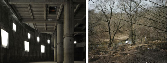 Алекс Булдаков и Настя Рябова сделали остроумное видео «Attentionwhores». В кадре - неприметный, но неистребимый уличный мусор, мелкие черты неопрятности среды: разбитое стекло, пластиковый пакет, кусок трубы. Монтаж и саундтрек с музыкой из фильмов Хичкока рождают саспенс, кажется, каждый предмет либо станет орудием преступления, либо уже является уликой. Ан нет, это - спектакль, который состоит из одного акта, ружья, висящего на сцене, которое не выстрелит, после чего упадет занавес. С мусором ничего не случится, он останется лежать там, где лежал. Группа «МишМаш», наследники московского концептуализма, проанализировали город Екатеринбург с точки зрения повторяющихся ритмов в архитектуре и планировке. По просьбе художников два человека с абсолютно разными точками зрения – итальянец Джакомо Инфелизе, увидевший город в первый раз, и абориген, искусствовед Светлана Усольцева, сняли серии фото. Городские виды «МишМаш» переделали в абстрактные картины, в которых как напоминание о чем-то земном и человеческом осталась только возможность абстрагироваться.