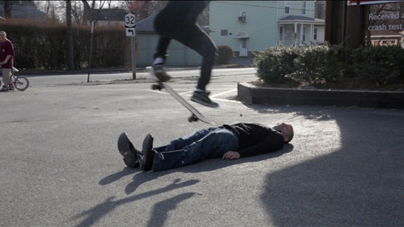 Тим Дэвис, видео «Быть препятствием» из серии «Олимпийские игры на севере Нью-Йорка»Поднятие вверх на вытянутых руках старых телевизоров с последовательно увеличивающейся диагональю экрана, висение на соседском заборе, бег по спирали между парковыми кипарисами или сплав по каналу на спине – никуда не годятся как соревнование. Но зато, в отличие от официального спорта могут сделать интересней жизнь каждого отдельного гражданина.